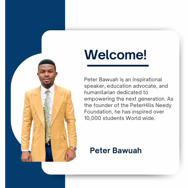 “Peter Bawuah inspired me to believe in my potential and take education seriously. His message and the PeterHills Needy Foundation gave me hope, confidence, and direction for my future. I am currently in United State, USA Persuing my Masters".